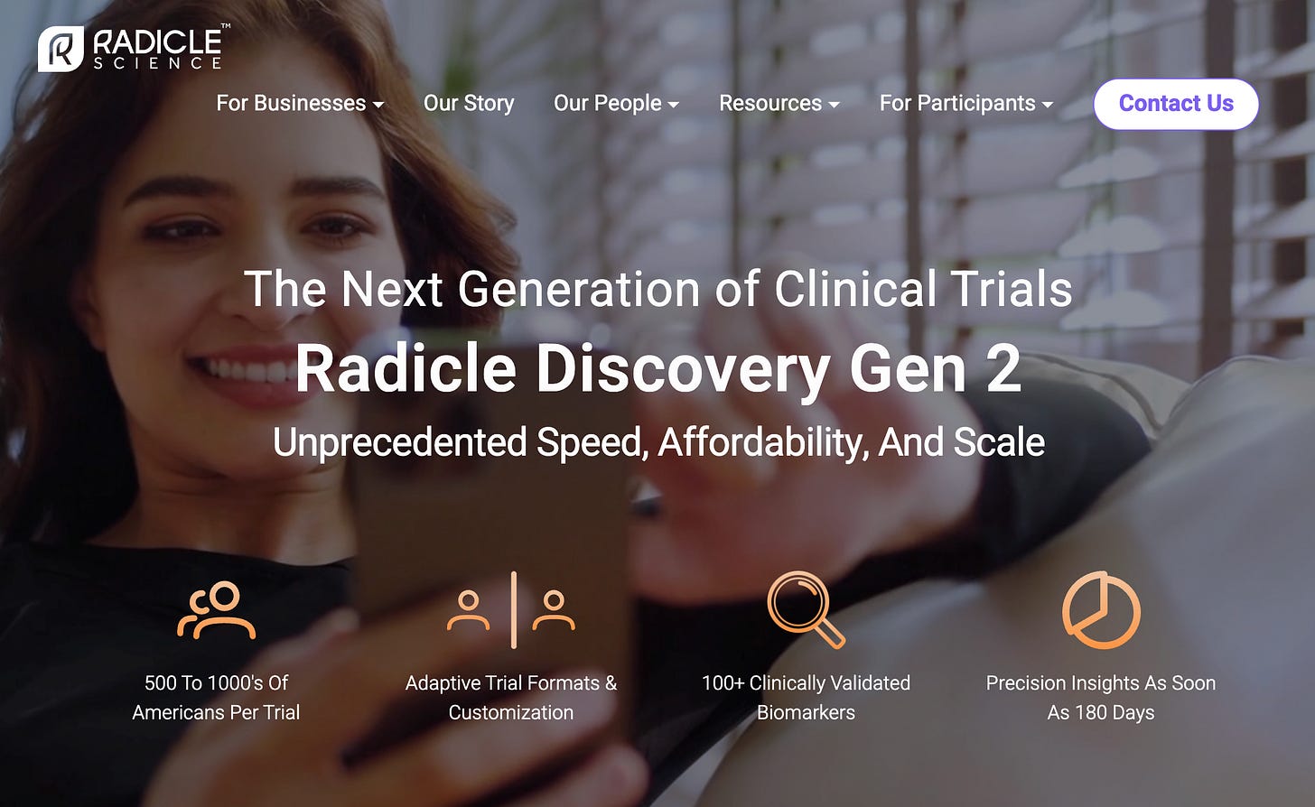 Radicle Science offers a "Proof-as-a-Service" platform that conducts large-scale, placebo-controlled clinical trials to validate the safety and efficacy of non-prescription health products.