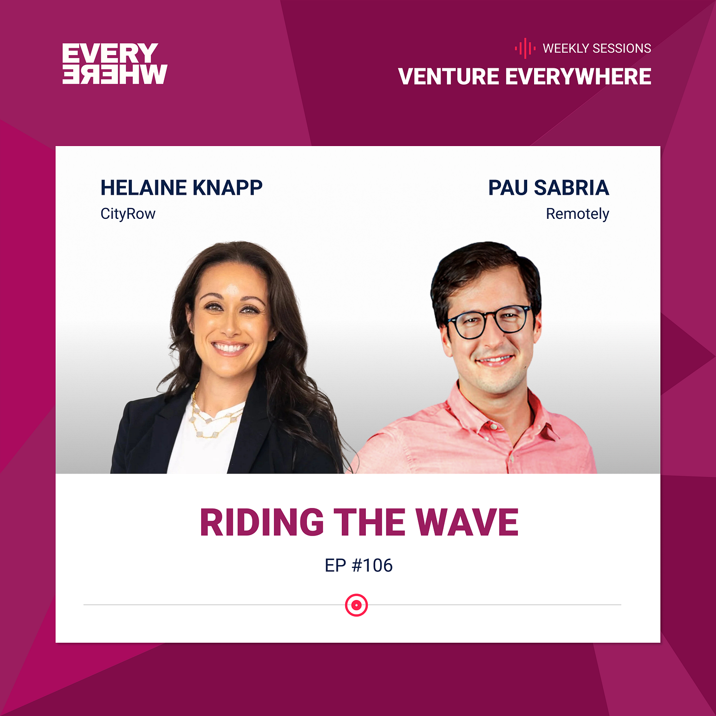 In episode 106 of Venture Everywhere, Pau Sabria, co-founder of Remotely.works—a platform helping companies hire software engineers in Latin America—talks with Helaine Knapp, founder and former CEO of CityRow, a rowing fitness franchise that was acquired. Helaine reflects on how her career in tech startups at Buddy Media and Olapic gave her the foundation to build a brick-and-mortar fitness business. She discusses writing Making Waves, using brutal honesty to tell the entrepreneurial story most founders won’t share, and navigating the in-between as host of Step Into Next, a podcast about walking together from what was to what’s next.